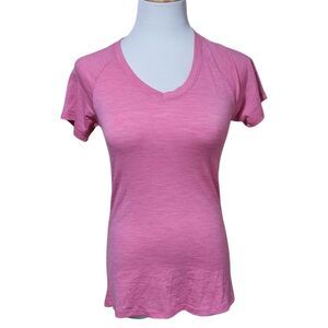 Woolx Merino Wool V-Neck Striped Tee Activewear Top Breathable Pink XSmall