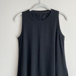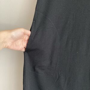 Woolx Womens Clara Dress Merino Wool Size Small Black Casual Travel Pockets. Woolx womens Clara dress. Round neck. Sleeveless. Front pockets. Merino wool, nylon and spandex fabric. Stretchy. Black. Size small. Measured laying flat: 17.5 inches from pit to pit, 36 inches long from top to hem.