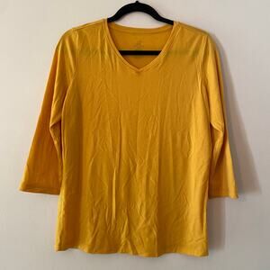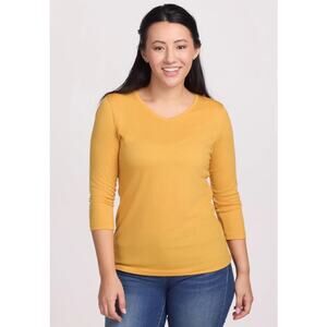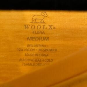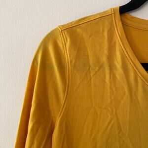 Woolx Women's size Medium Elena Gold Yellow Merino Wool V-neck Tee T-shirt 3/4