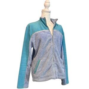 Wooly Bully Blue Fleece Womens Sz Large Full Zip Two Tone Blue Lightweight
