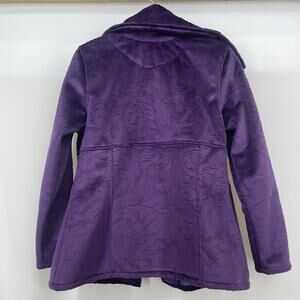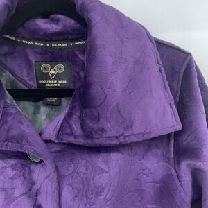 Wooly Bully Wear Colorado Size M Peacoat Purple Plush Floral Large Collar Womens