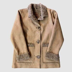 Wooly Bully Wear, Handmade Jacket, Lined Coat, Colorado Made, Rustic Style, Boho Outerwear, Tan Suede Look, Wool Blend, Women’s Medium, Winter Jacket, Used, Wyoming, Colorado, Idaho, Bohemian, Frontier, Fall