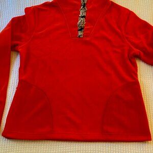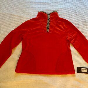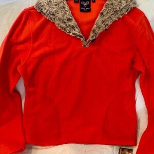 Wooly Bully Wear Brand 100% Polyester Lightweight Fleece Pullover. Faux fur collar with toggle closures. Hidden zipper pockets on side seams. Machine washable. Made in China.