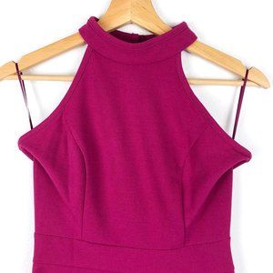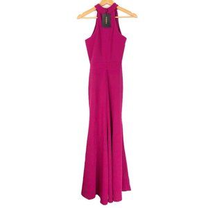 Woosea Magenta Dark Pink Fuschia High Neck Halter Sleeveless High Split Ruffle Mermaid Style Maxi Dress S