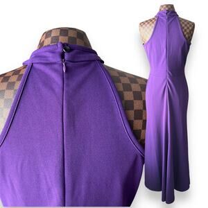 Woosea Purple Mermaid Dress Large Maxi Bodycan High Neck Front Slit Halter