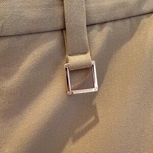 Sleek, tailored flared trousers from Wooyoungmi. These pants feature a warm brown tone, structured leg with a subtle flare, and a squared metal belt loop detail at the waistband. Lightly worn, in good pre-owned condition. Open to reasonable offers.