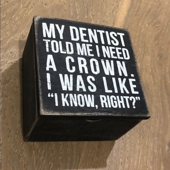 “My dentist told me I need a crown. I was like “I know, right?”” box