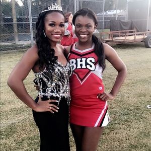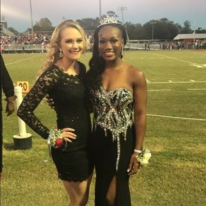 Iridescent rhinestones going down the side of it