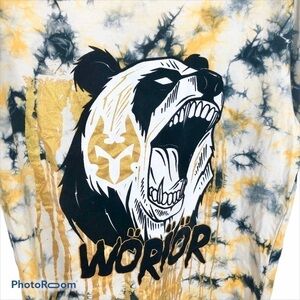 Worior Tie Dye Bear Print T-shirt Sz Large Men’s Yellow Black