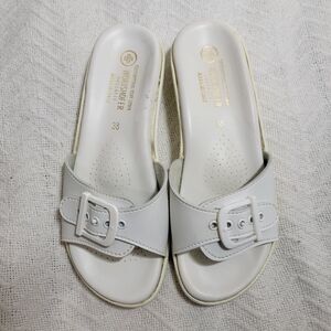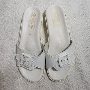 Worishofer Fussbett Leather Comfort White One Buckle Low Wedge Slide Size european 38 US 7-7.5 made in Italy