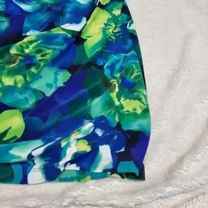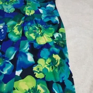 Has gathered material on the right side to create visual interest and a more slimming look.