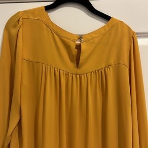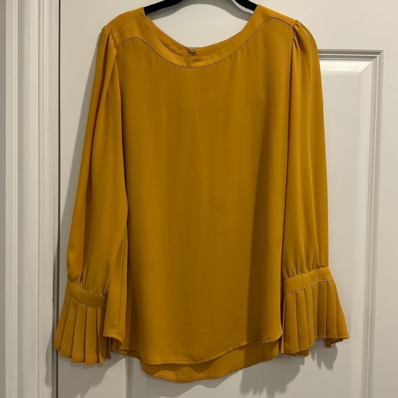 Goldenrod blouse perfect for work. Accent accordion on sleeves. Work once.