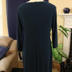 New with tags dark teal long-sleeved dress with cute ruffles on the left side