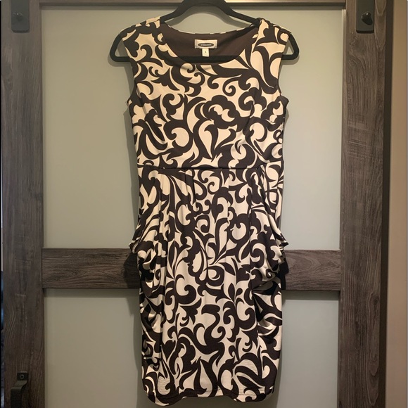 Intermission Brown and Creme Dress. 95% polyester, 5% Spandex, Lining 100% Polyester.