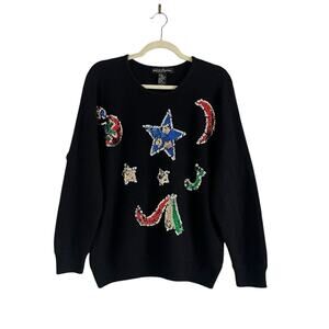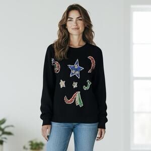 Tags: Vintage, 80's holiday season, Angora Christmas sweater, Lambswool Christmas sweater, Angora Christmas sweater, Retro style, Work In Progress Christmas Sweater, Stars sequins Christmas sweater, Celestial Christmas sweater, vintage Sweater.