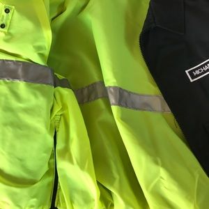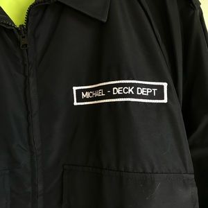 Flying Cross windbreaker, reversible to neon yellow for high visibility, 2 large pockets, 100% nylon, brand new with tags, sewn patch with “Michael - deck dept”