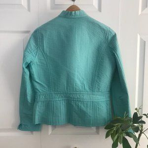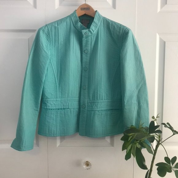 Turquoise blazer/jacket is so cute to wear to work. A fun way to step it up beyond a basic black blazer. It has very cute details like the pockets, waist-line, and buttons.