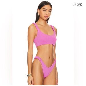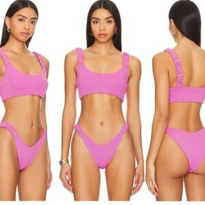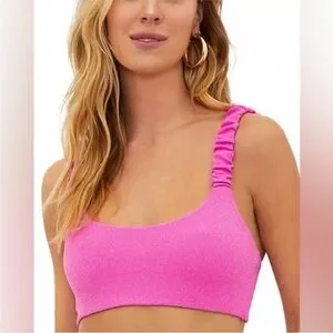 Worn Once. Chic and bold pink glitter bikini by Beach Riot. Perfect for sunny beach days. Comfortable and stylish design.