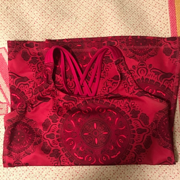 Reebok Work Out Top | Size M Dark pink design work out top with a nice back strap design. Form fitting and built in bra! NEVER WORN