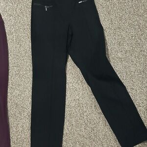 Two pairs of stretchy work pants. Colors are black and wine. Both size medium, regular length. I work from home and no longer need. In excellent condition.