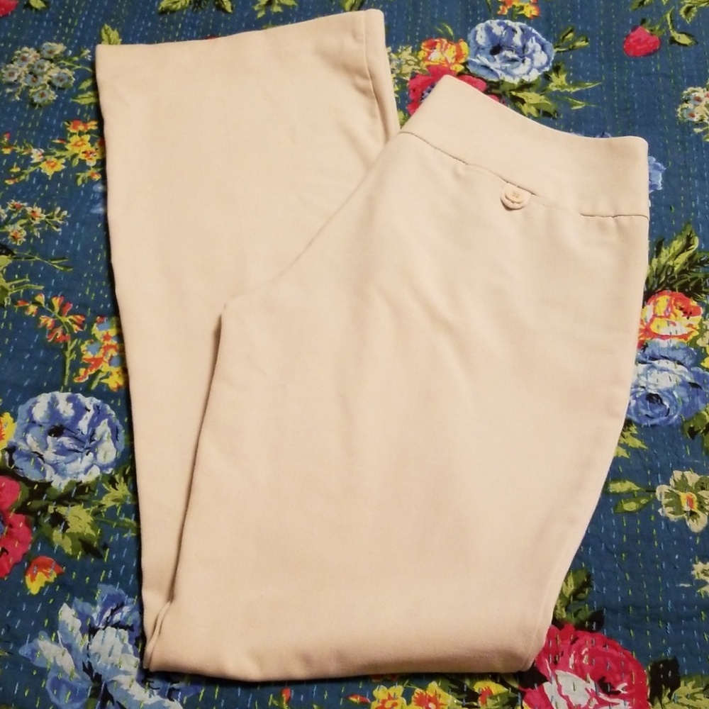 Pre-owned condition with a couple pin-point stains and some discoloring on the inside of the back pant legs. Please see al pics. Missing buttons but has hook closures. Still a good pair of slacks with a lot of use yet. Size 7. Molly fit.