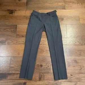 Dark grey tapered work slacks. I had these taken in at the hip/butt area so they fit more like a 2. I’m a 24/25 and these fit, slightly loose but not necessarily too big depending on desired fit.