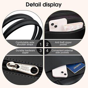 Features: Stylish vegan leather tote with a sleek, professional look. Waterproof and scratch-resistant, it’s designed to handle daily commutes and busy days without warping or sagging. Fits a 15-inch laptop, makeup bag, and umbrella easily, all while staying slim and lightweight.