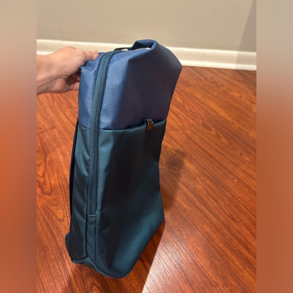 Front pocket, back pocket, and numerous pockets inside - can hold laptop