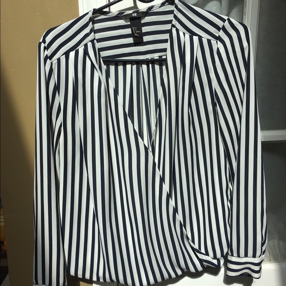 Beautiful h&m navy and white wrap blouse. Size 6. Perfect for work or any occasion.
