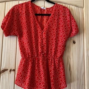 Work blouse bundle- red green and blue blouses, cinched at the waist then flowy.