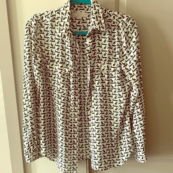 Loft rabbit button down that’s so cute with a coral skirt or black pants for work. Rabbits are a dark green almost black in color
