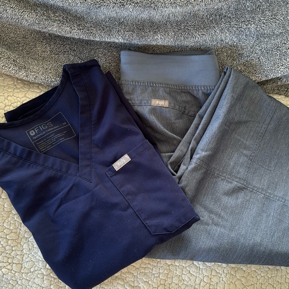 Super comfy scrubs. Figs both (top & bottom) size xs Light blue bottom and navy blue top