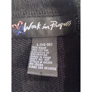 Work in Progress Full Zip Christmas Sweater. Embroidered and beaded poinsettias printed and holly leaves on the front. Light shoulder pads that can be cut out if not wanted. Size L, 23" pit-to-pit and 23" long.