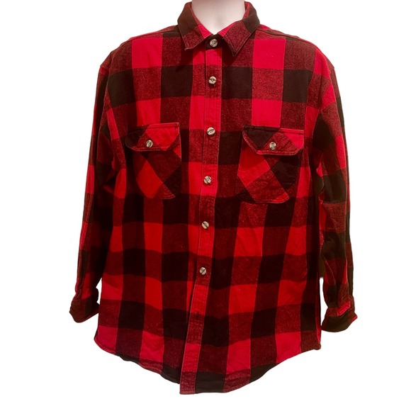 Work n Sport Heavy Flannel Shirt Button Up Men's XL Red Black 8.7.2:A-0003