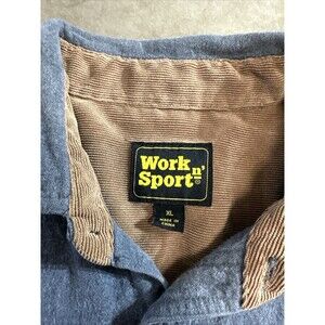 Work n Sport XL Gray Flannel Shirt Jacket Button Up Corduroy Trim