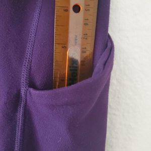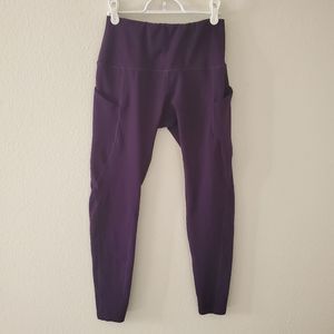 Work out leggings size small more measurements in photos. High waisted full leg. Dark purple color. Good condition but shows minor signs of wear such as pilling and a small stain on the hip. Please consider bundling with me for more savings and deals and please check out my closet for more workout wear.