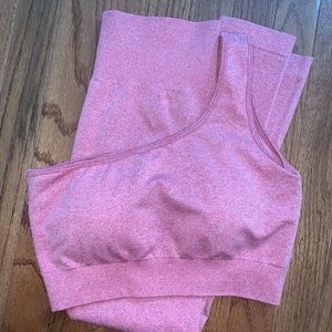 High waisted pink off the shoulder work out set