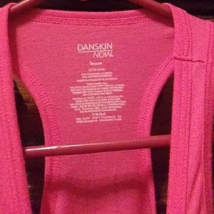 Pink with a girl running looks like in a park that says " mind over matter". Work out top, women size small loose.