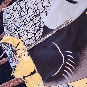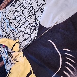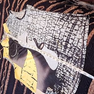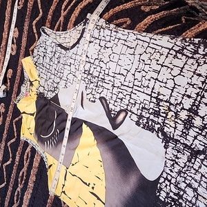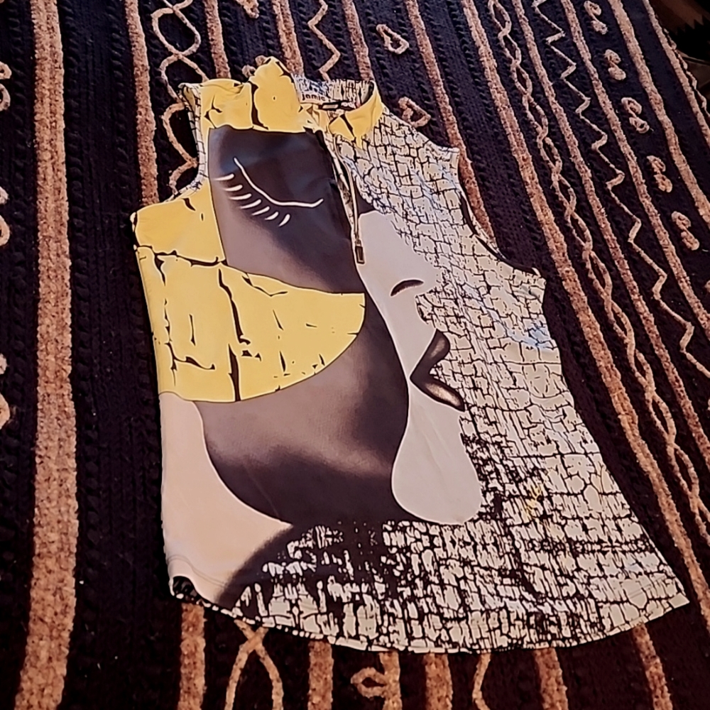 beautiful colors, zipper front at top. some stretch. love the material. measurements and tags are in photos.