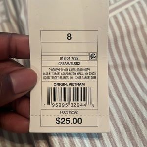 Nude and Cream colored work pant. Very fitted. Elastic waist. Faux pockets on backside. Zipper on side.