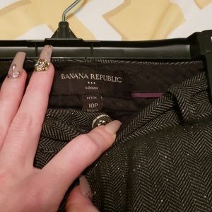 Gray slightly worn work pants.