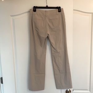 Beige slacks that are gently worn. Slightly wrinkled. Fit like a 4 in the waist and legs. Long on me (5’4”)