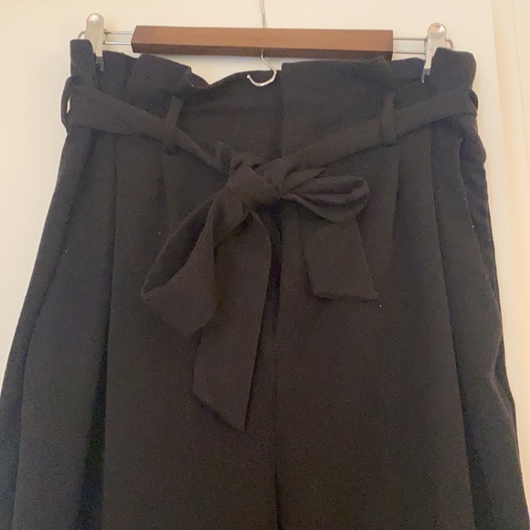 Black High waisted tailored work pants with cute tie belt