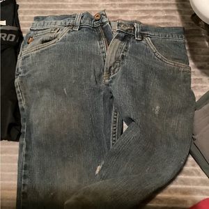 2 pairs of work pants the jeans are well worn, the Forrest pants are in like new condition