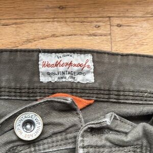 Weatherproof vintage collection. Used, distressed, work wear. Size 34x32. Dark faded green.