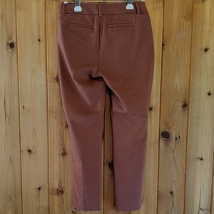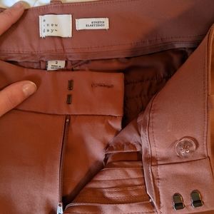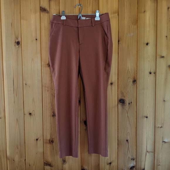 Burnt sienna work slacks.