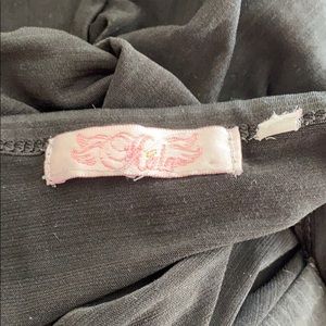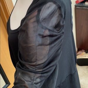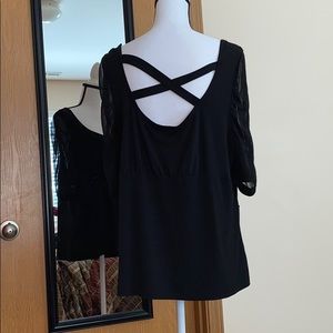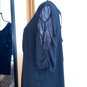 I am not sure of the size of this as the label has been worn away but I am a size 18/20 and this fits me perfectly. It’s a light material with chiffon sleeves. The back has an open criss cross. It must have come with some sort of belt but I don’t remember it having one, can easily be replaced with any thin piece of ribbon.