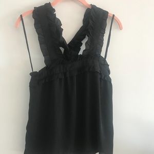 Black ruffle cross neck. Good for work or going out.