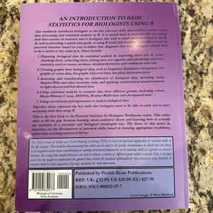 Statistics for biologists using R workbook, like new, not written in. See pics for more info. Selling for my daughter. I have no idea what “R” is, lol.