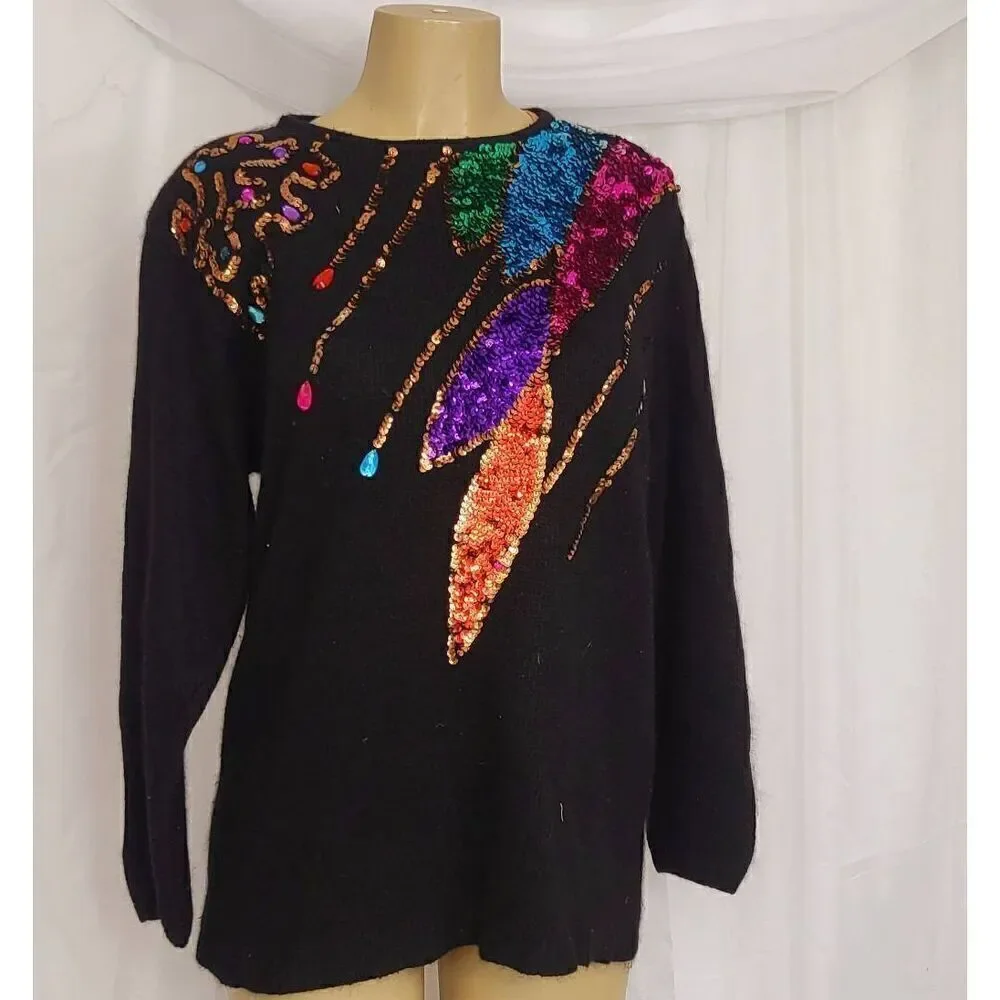 Vintage silk blend crew neck long sleeve sweater